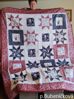 Pokud zvolíte deku, měla by mít rozměr aspoň 4x5 bloků. Bloky jsou velké 35x35cm. To by pak bylo cca 140 cm x 175 cm + bordura okolo, aby byla deka velká tak jak budete chtít. Doporučuji 20cm na každou stranu, aby byl aspoň klasický rozměr deky 180 cm x 220cm. Ušijeme na malém stroji, naučíte se tedy postup, jak třeba i na jiné deky pod klasicky dlouhým ramenem Vašeho stroje.