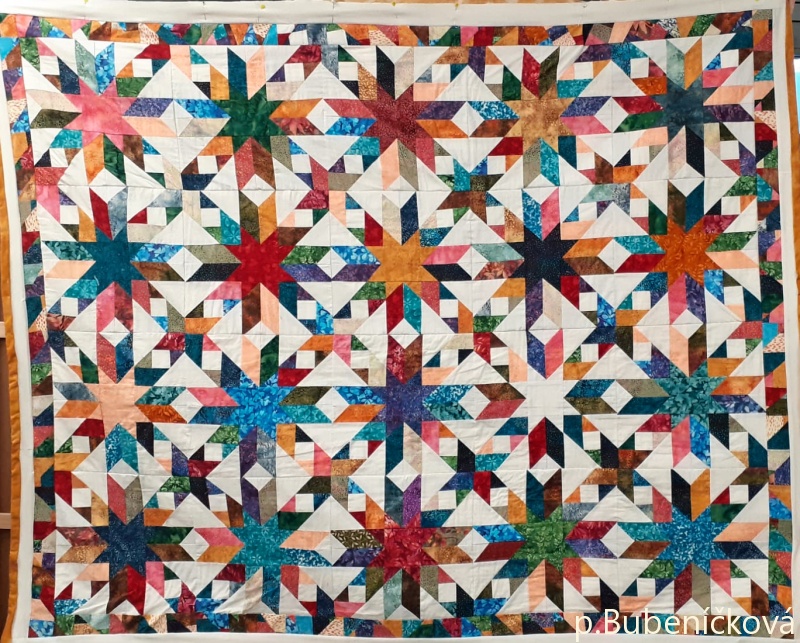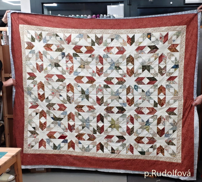 Tento kurz je především o spotřebování zbytků látek při jednotném kontrastním pozadí, aby na něm všechny vynikaly. Dílků je v bloku hodně a je třeba si tedy dílky připravit předem. Na kurzu se učíme různé vychytávky při sešívání dílů, aby vám vše hezky sedělo...