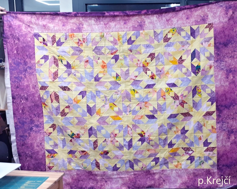 Kdo se rozhodnete pro deku, byla by velikost 140X175 cm + bordury. Šíří bordury lze velikost deky pak upravit na rozměr, který chcete. Šijeme spolu 4x5 bloků.