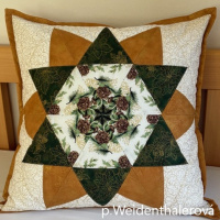 Skládaná hvězda, blok na chňapku, obrázek, polštář... Velikost bloku cca 45x45 cm.